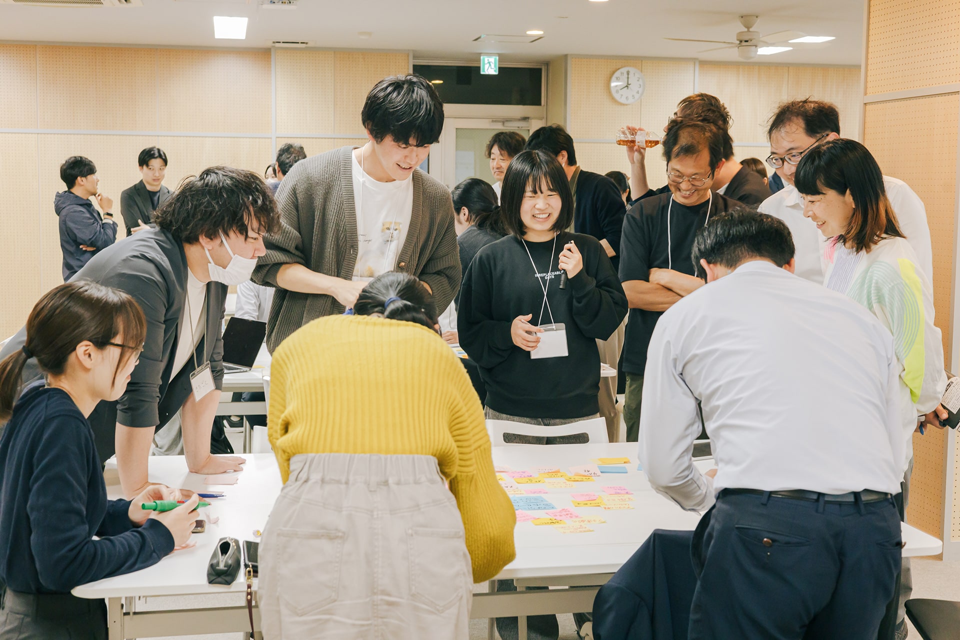 ワークの後半では、出し合った課題を解決するアイデアを考え、チームごとにプロジェクト案をつくりました。「3ヶ月後に実行できそうなプロジェクト」という吉備氏からのお題に、短時間で頭も手もたくさん動かしながら、メンバー同士でプロジェクトの方向性を共有。アイデアを整理し内容をまとめ、さらにそこに関わってほしいステークホルダーについても話し合いました。
