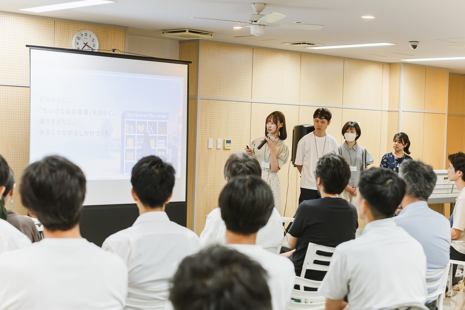 居場所づくりを考えるAチームのプロジェクトは、地域や人との出会いのきっかけとなる「まちかどに“ちいさな私の部屋”をひらく。通りすがりと、ゆるくつながるしかけづくり。」。駅前やショッピングモールなど、さまざまな人が通りかかる場所に、誰でも使える小さな展示ボックスを設置し、その展示スペースを貸し出す取り組みです。
